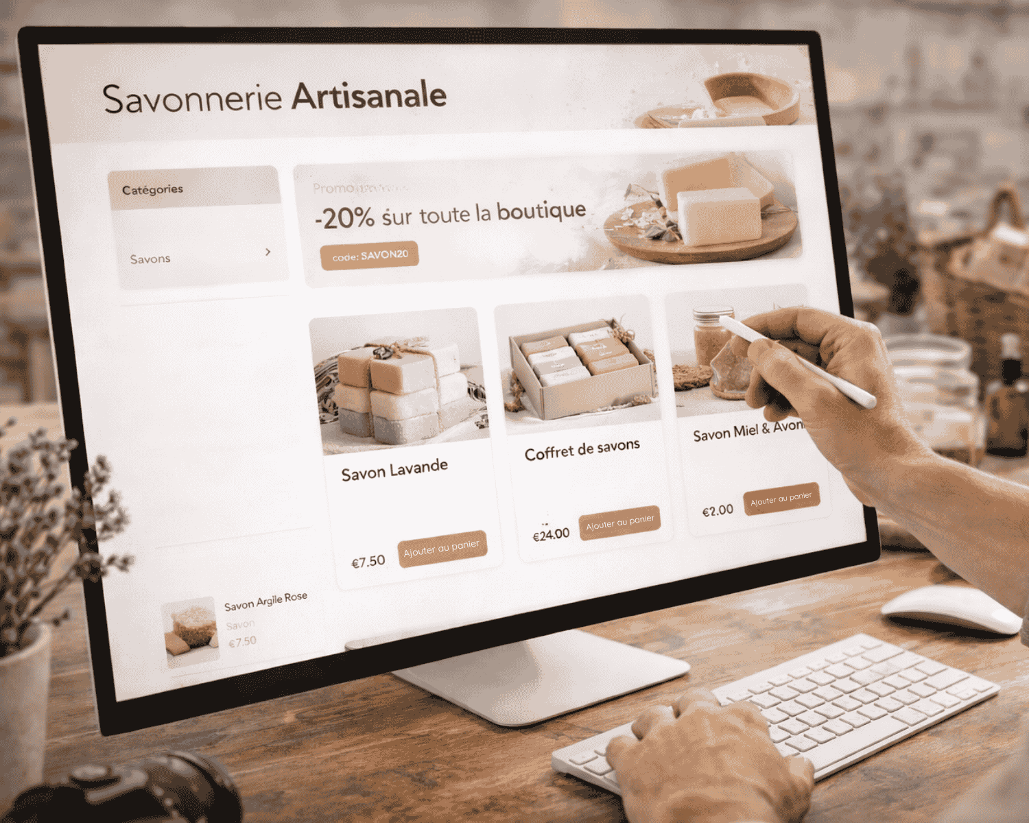 Je crée pour votre savonnerie artisanale une boutique en ligne optimisée pour être visible sur Google et attirer des visiteurs qualifiés.